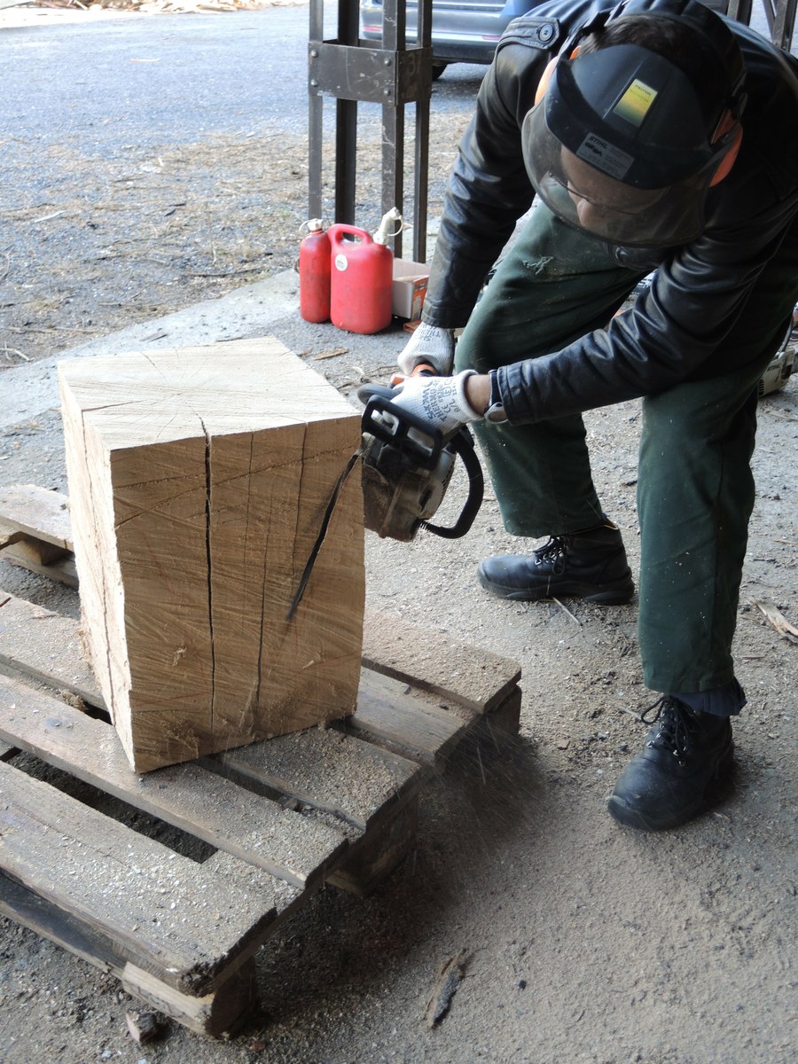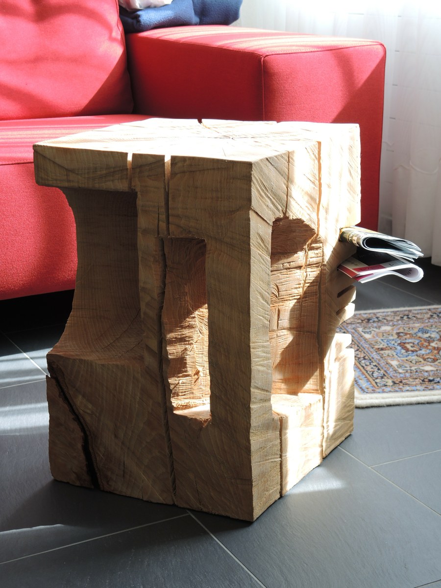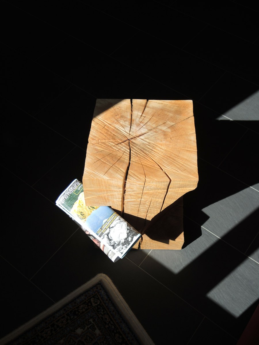 Einführung Grosse Auswahl Schöner Stamm Schweres Geschütz Jetzt gilt es ernst... Der Anfang Stück für Stück... Durchbruch Fleissarbeit Stubentisch: Nachschliff Der Arbeitsplatz Das zweite Gesellenstück et voilà Platz gefunden Risse, Licht, Schatten Bild Finishing der Scheibe