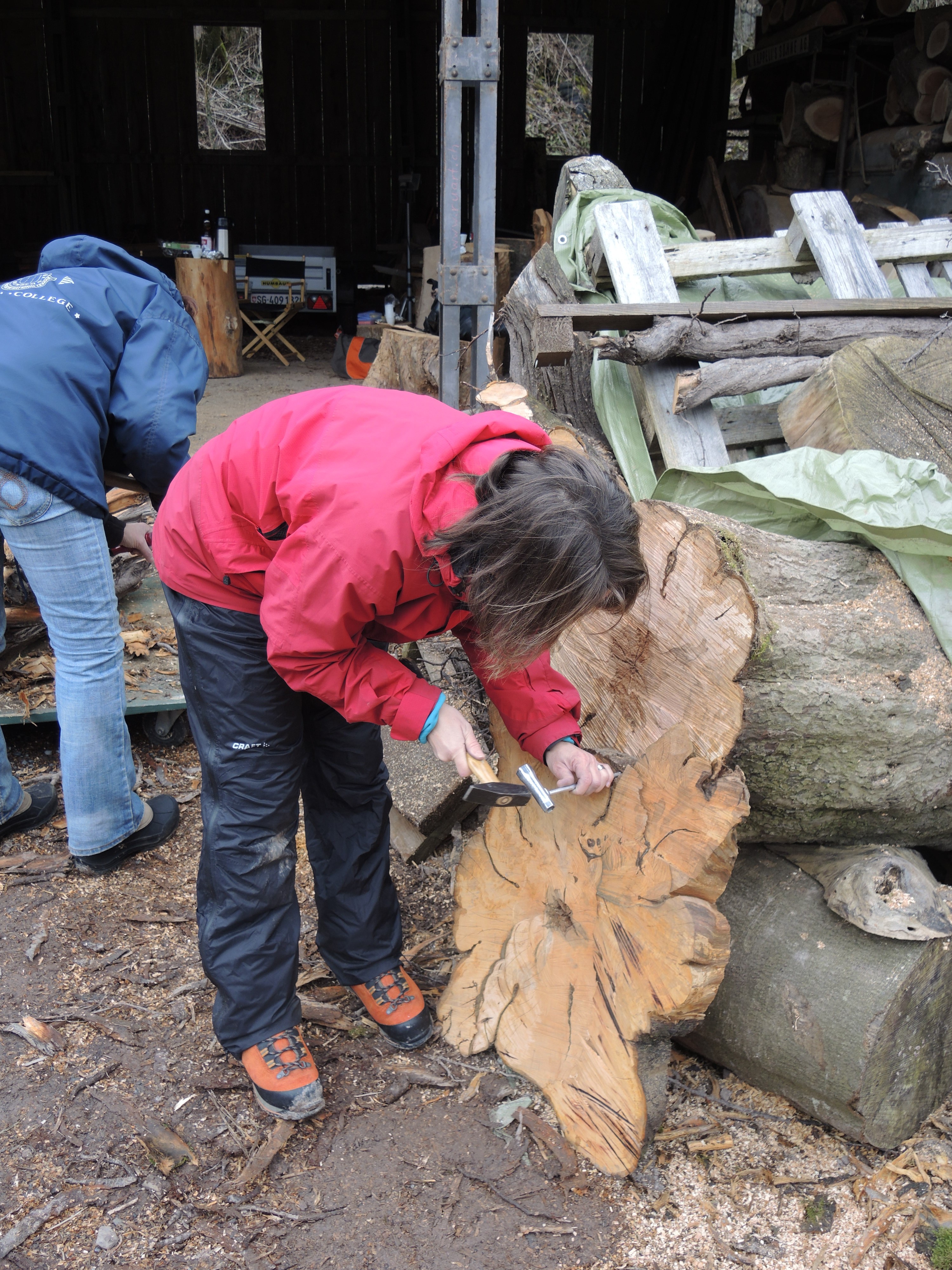 Die Fotografin hat eine Nebenbeschäftigung: Rinde entfernen