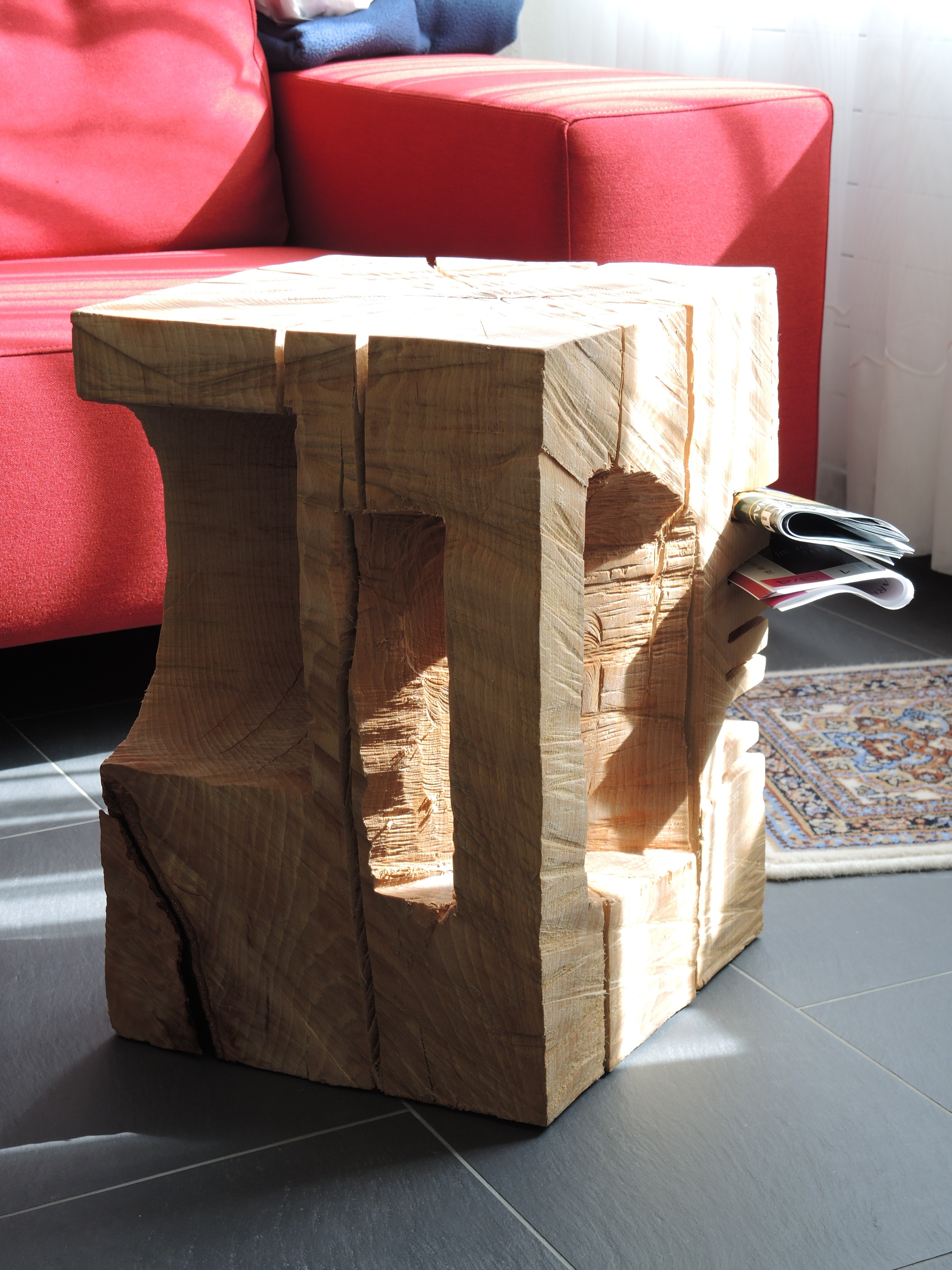 Inzwischen ist das Tischchen mit Arbezol gegen Insekten behandelt und eingeölt worden. Es steht nun im Wohnzimmer und ich habe riesig Freude daran.