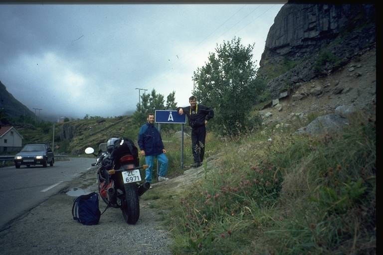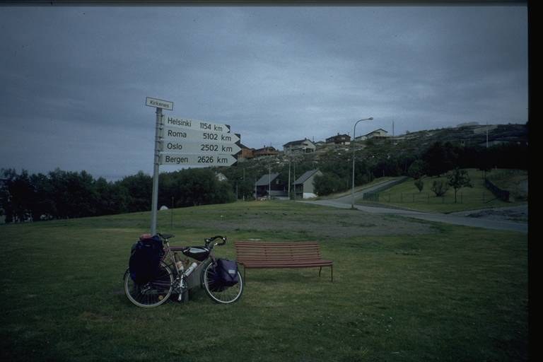 Start in Bolligen: 31.05.1997 Erste Panne nach Burgdorf Rattenfänger in Hameln Unter Niveau Null in Deutschland Häuserbau traditionell bei Husum Dänemark Wildcampen (Telemark, Norwegen) Stabkirche Abschied von Marcel in der Hardanger Vidda Rallarvegen (Geilo-Finse) Steiler Abstieg ins Flamtal Im Zelt , und draussen regnets in Strömen... Sognefjell Meine Gastfamilie in Trondheim Campingplatz Stokka: der Schönste! Ljubo Lofoten Rätz , Schweizer Kunst auf den Lofoten mit Johnny auf gemeinsame Wanderung Nachtplatz vor Tromso, alles war nass... Flussüberquerung Abisko NP Hurtigrute 1 Hurtigrute 2 Nordkap Hafen Kirkenes Wendepunkt Kirkenes Felsenkirche Helsinki Rentiere in Lappland Malin in Schweden Fahrradtransport in Estland Unsere Reisegruppe durch die Baltischen Staaten Zeltstadt im Litauischen Wald Wind: meist von vorne Kreuzhügel bei Siauliai Kurische Nehrung 1 Kurische Nehrung 2 Kurische Nehrung 3 Heimat ;-) Wieder zuhause 23.10.97